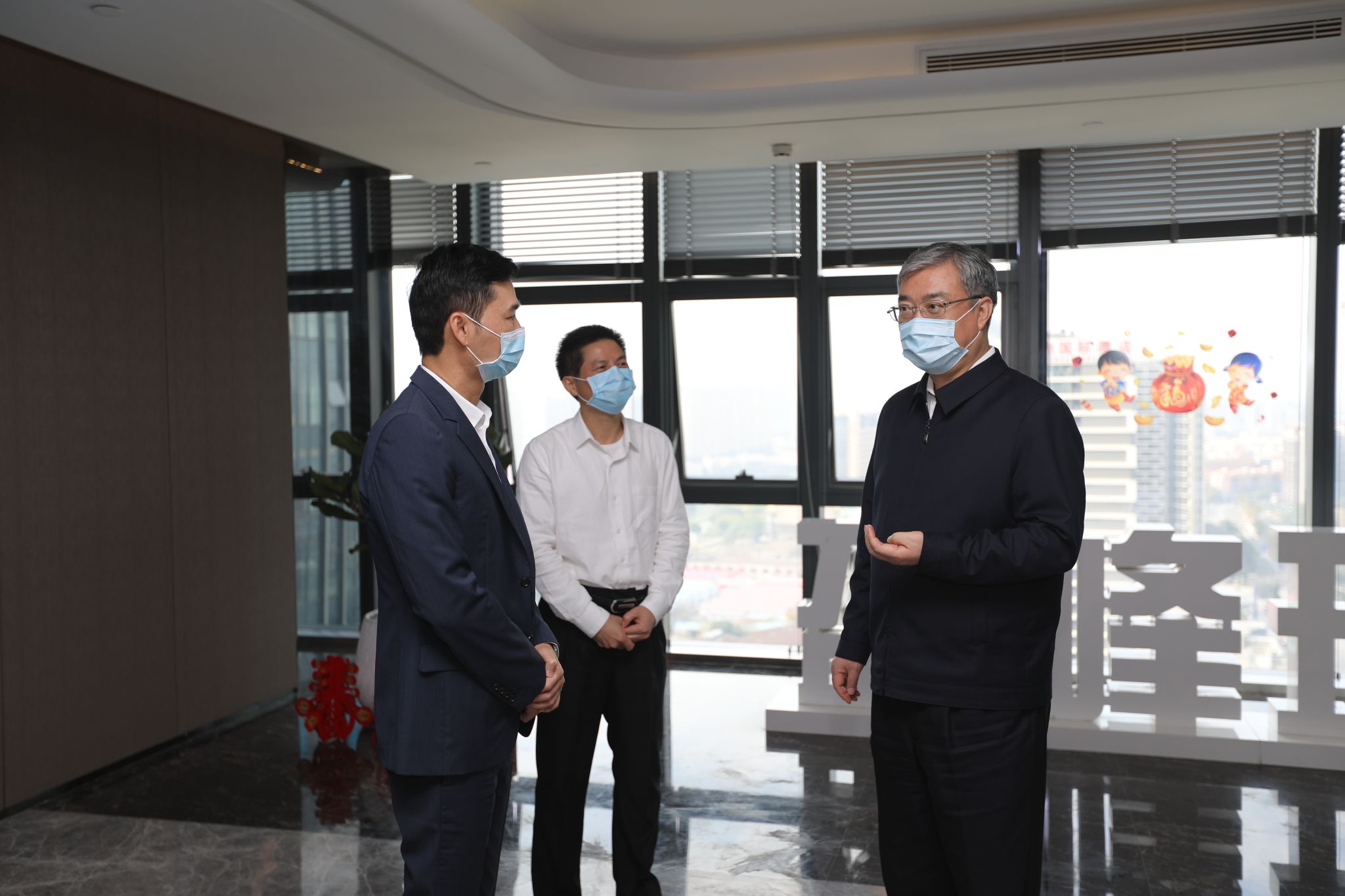 2月25日上午,佛山市市委书记鲁毅来到星空游戏环境,就进一步做好企业复工复产及疫情防控工作进行调研检查。市委副秘书长张朝志、顺德区区长彭聪恩陪同调研,星空游戏集团董事长兼总裁何剑锋、星空游戏环境董事长兼总裁马刚陪同介绍。